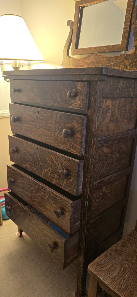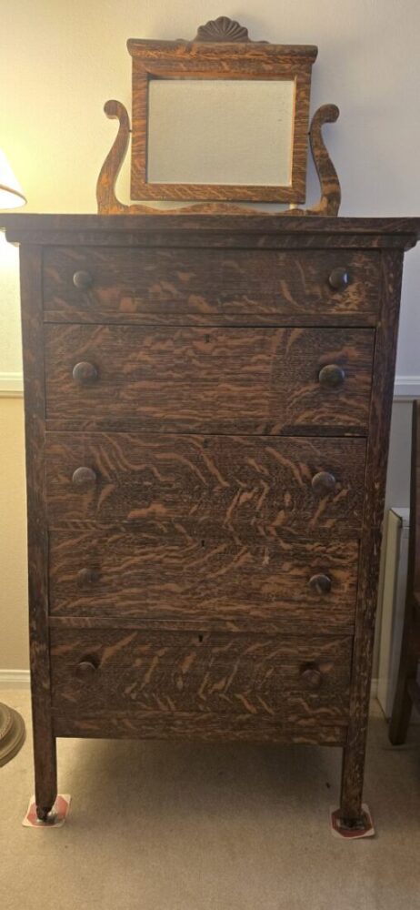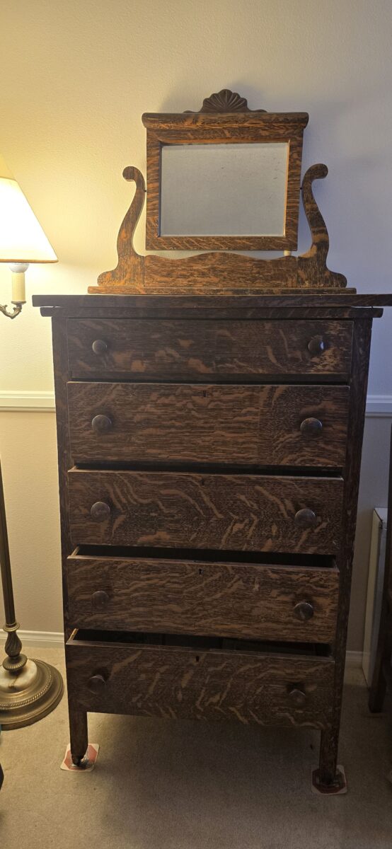 Tiger Oak Dresser (maybe called a Highboy) with Mirror – Vintage.